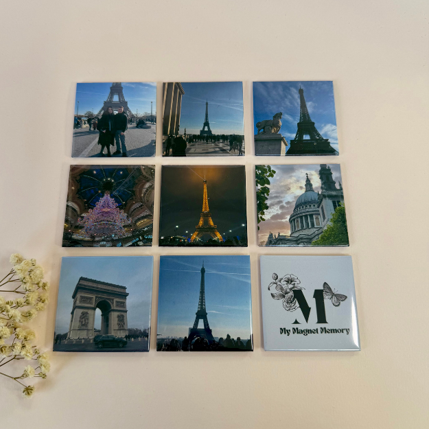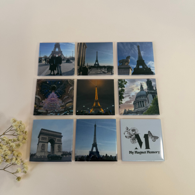 Get ready to fill your space with our best value pack—nine matching 2"x2" magnets that instantly transform your fridge into a lively, ever-changing gallery of your favorite moments and adventures. These custom magnets are the perfect little keepsakes to showcase your photos, memories, or artwork with style. Small but mighty, they stick brilliantly to any magnetic surface like refrigerators or lockers, adding a splash of personality while keeping your treasured memories close and colourful every day.